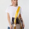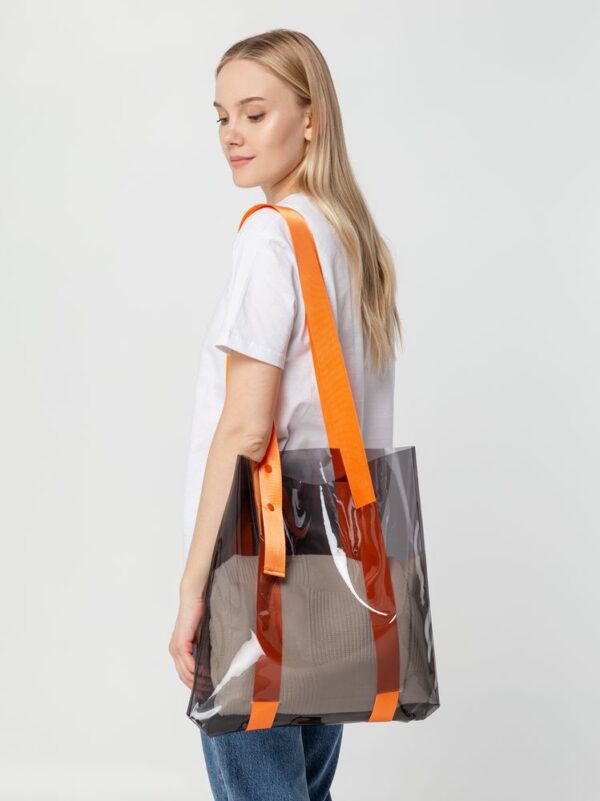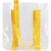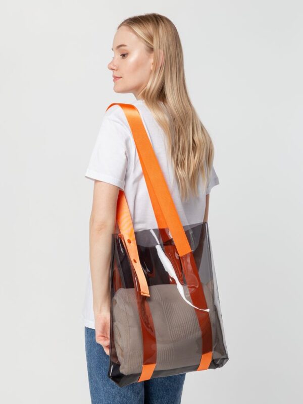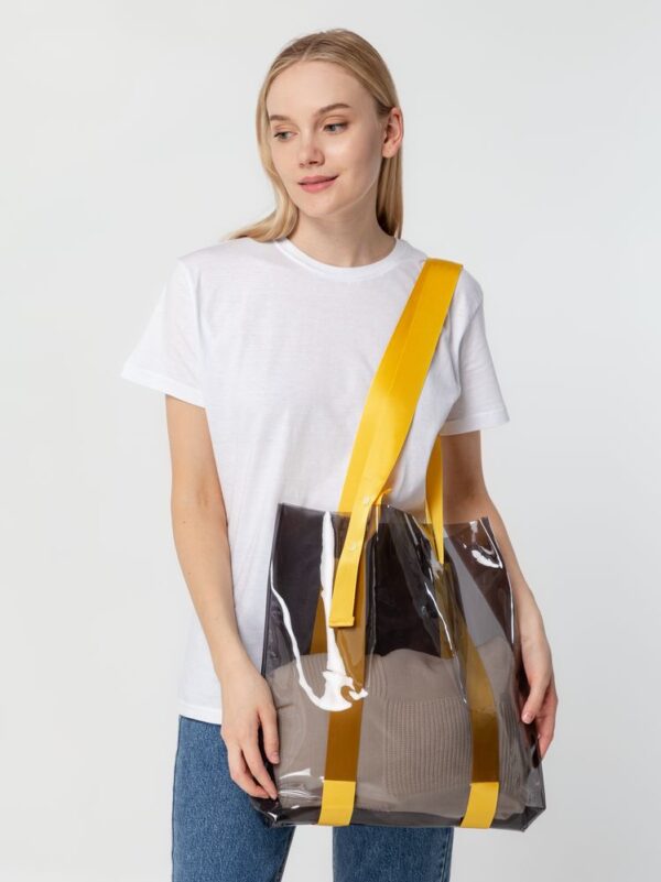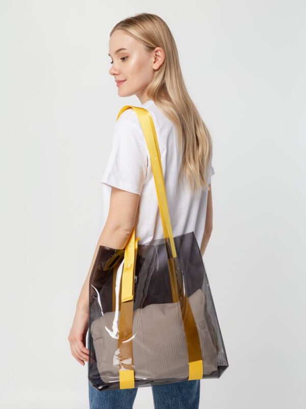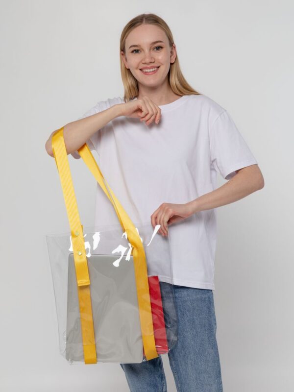 Прозрачные сумки никогда не выйдут из моды. А цветные ручки легко впишутся в брендбук и точно передадут настроение, которое хотелось бы транслировать.