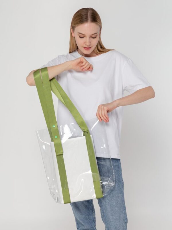 Шопер из ПВХ не промокает, легко чистится и выглядит стильно в любое время года и при любой погоде.
