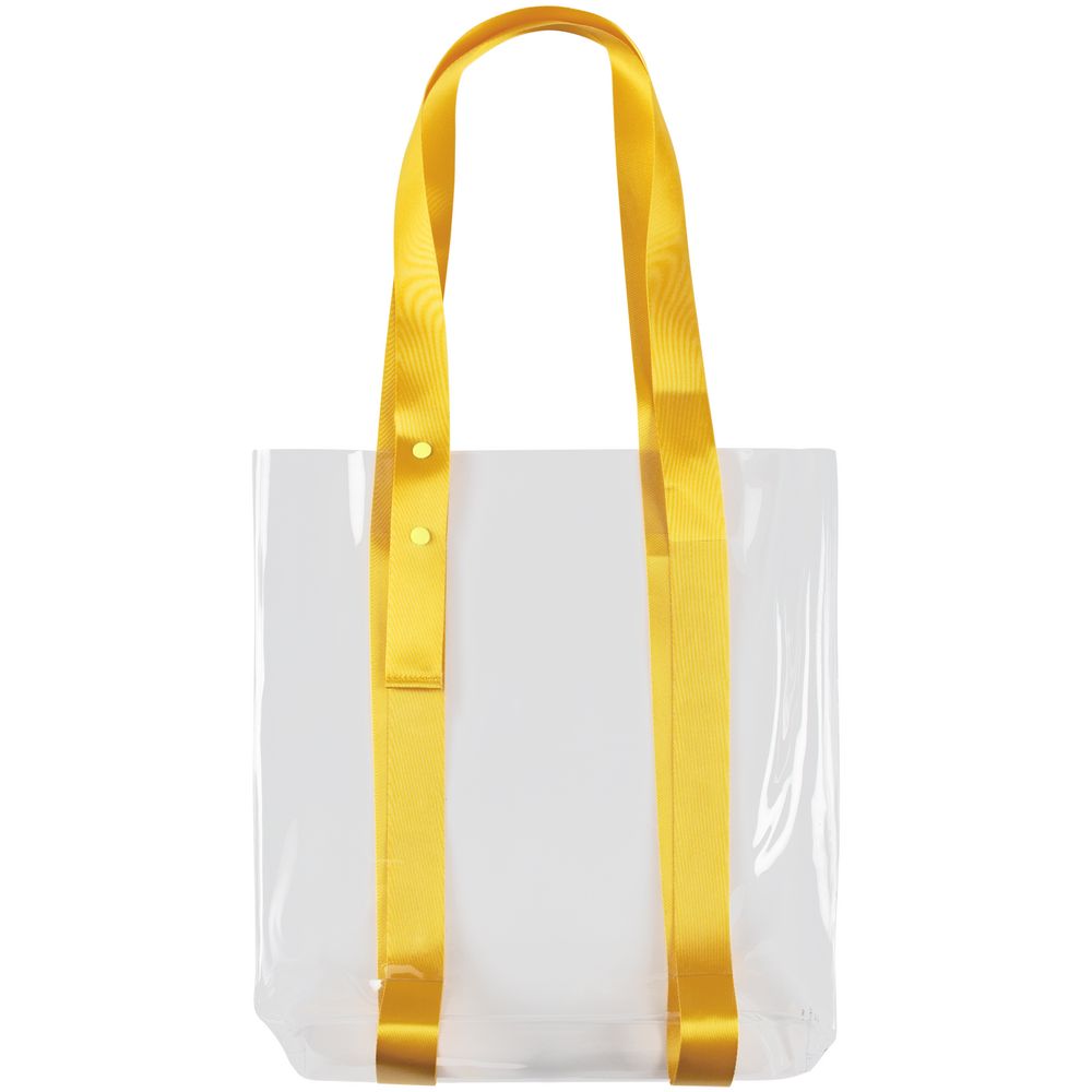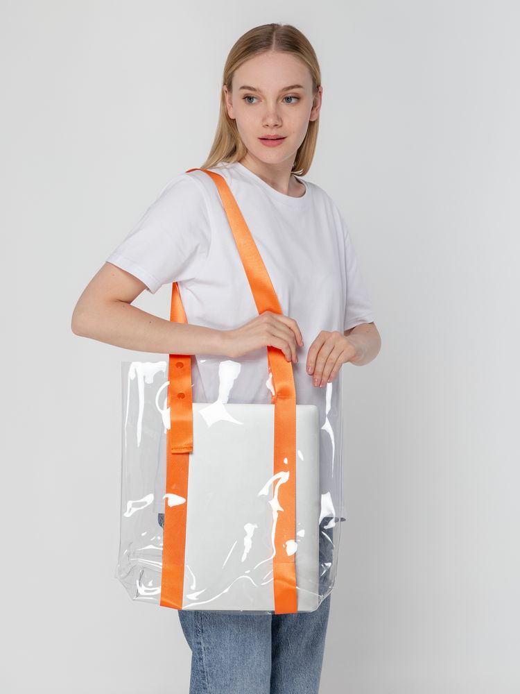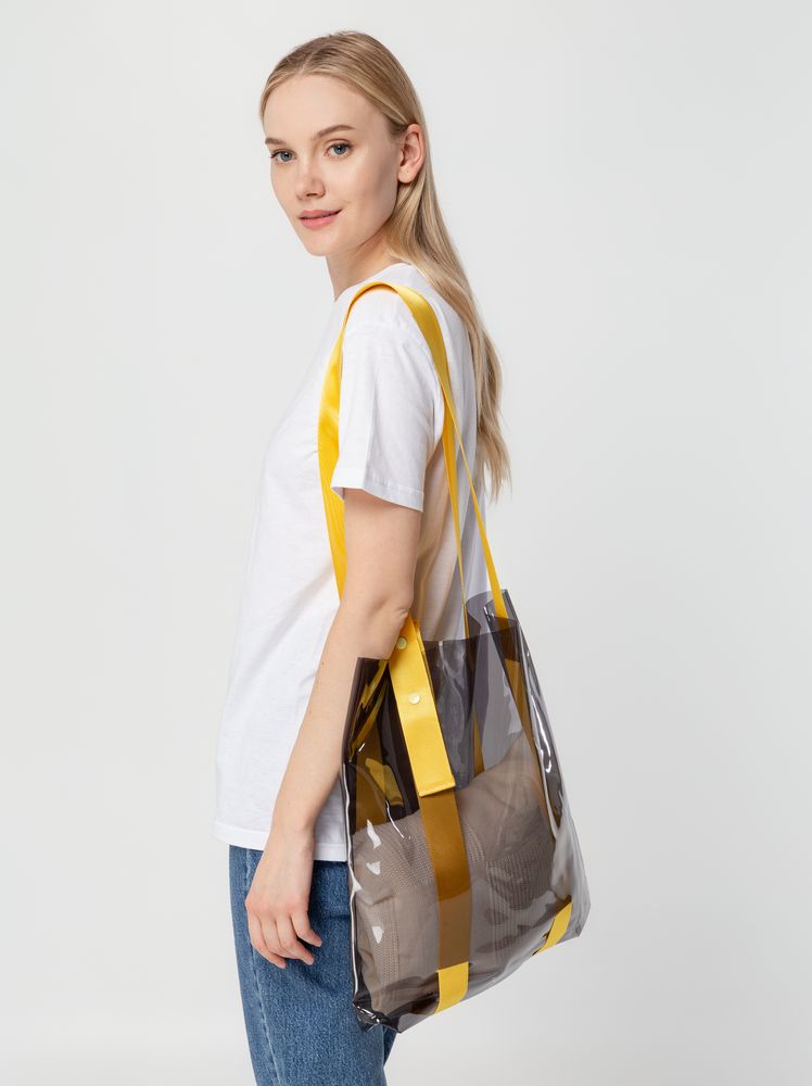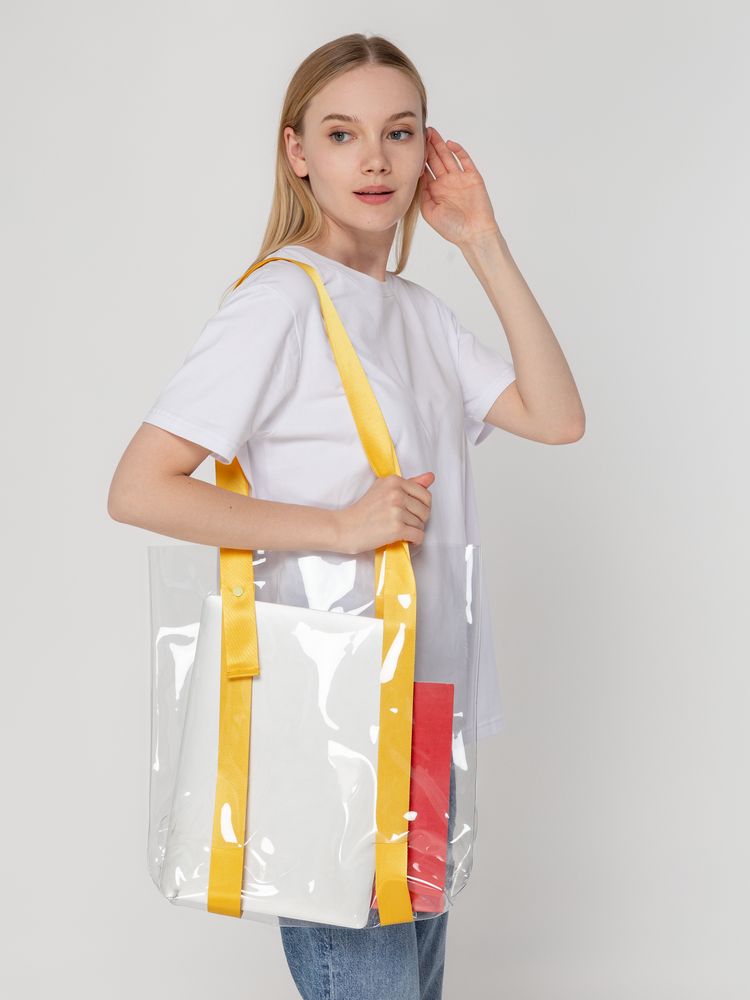 Прозрачные сумки никогда не выйдут из моды. А цветные ручки легко впишутся в брендбук и точно передадут настроение, которое хотелось бы транслировать.