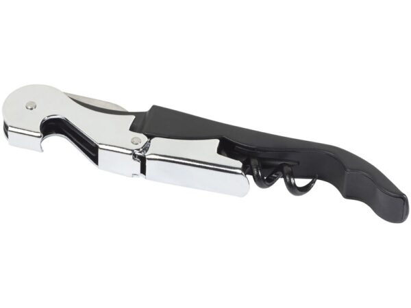 Штопор с буравчиком, открывалкой для бутылок и ножом для срезания фольги. Нержавеющая сталь.
