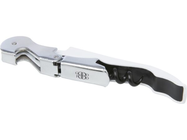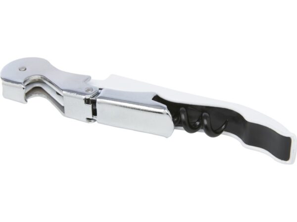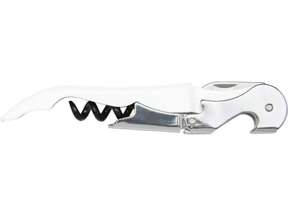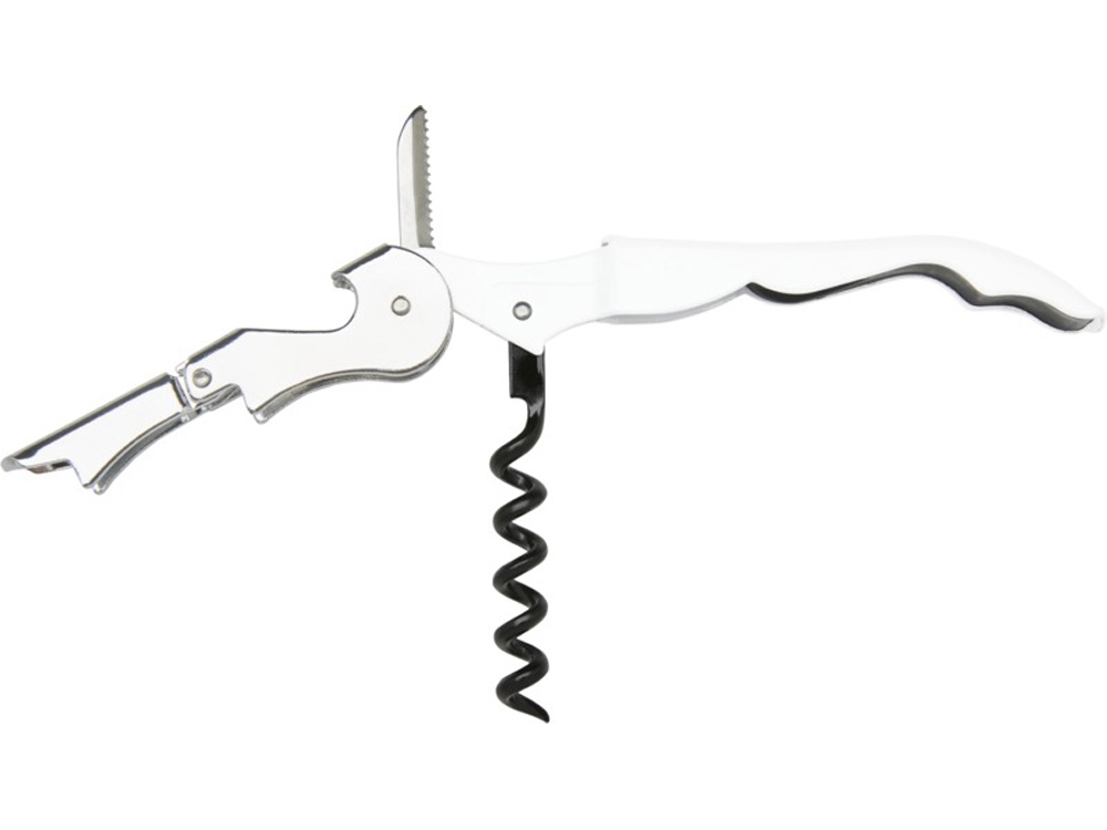 Нож официанта из нержавеющей стали с цветным корпусом со штопором, обрезчиком для фольги и открывалкой для бутылок. Благодаря двухступенчатой конструкции с его помощью вытащить пробку из бутылки не составит труда.