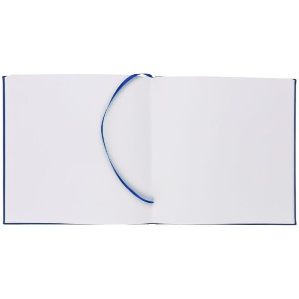 Скетчбук с твердой обложкой выполнен из материала Soft Touch, синий НН, дополнен ляссе в цвет обложки.