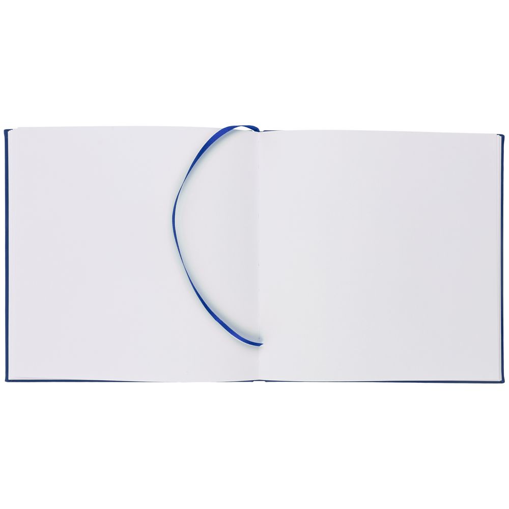 Скетчбук с твердой обложкой выполнен из материала Soft Touch, синий НН, дополнен ляссе в цвет обложки.