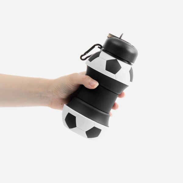 Оригинальная складная бутылка Football Flex будет отличным подарком для футболистов и всех любителей этой игры. Она также понравится людям, ведущим активный образ жизни, спортсменам, школьникам и студентам, любителям туризма и походов. Бутылку легко закрепить карабином на рюкзак или сумку и взять на тренировку, в школу, спортзал или даже на море! При складывании ее высота уменьшается вдвое.