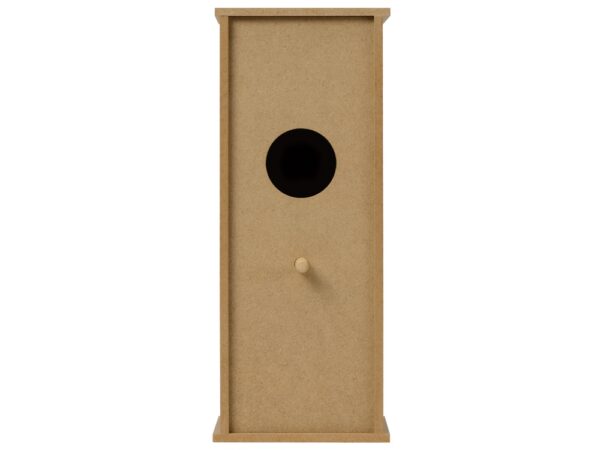 Сборный скворечник из МДФ поставляется в виде отдельных деталей в крафтовой упаковке. Собрать домик для птиц очень просто: понятная инструкция объяснит, как соединять детали, а приложенные винтики и жердочка-колышек помогут их скрепить.