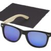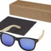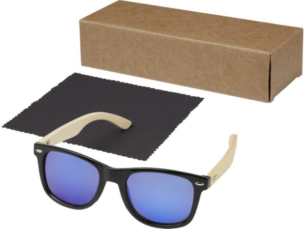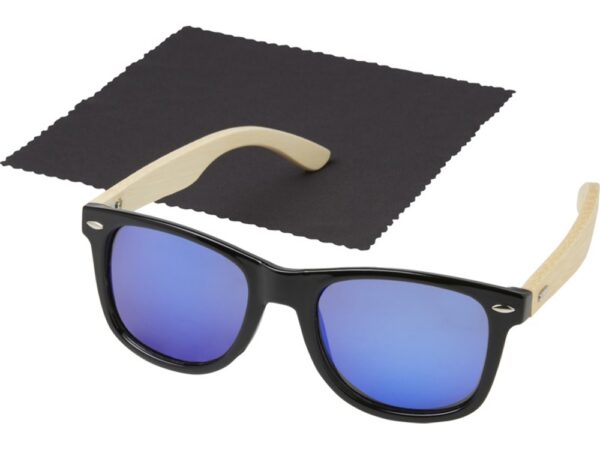 Солнцезащитные очки Taiyō в оправе из переработанного РЕТ-пластика/бамбука изготовлены из экологически чистых материалов с соблюдением самых высоких стандартов качества. Высококлассная отполированная и окрашенная оправа изготовлена из переработанного PET-пластика. Невесомые дужки с удобной посадкой изготовлены из бамбука, полученного из устойчивых, а также экологически и социально ответственных источников. Линзы имеют синее зеркальное покрытие и поляризацию, что исключает отражение солнечного света и делает эти очки идеальным вариантом для вождения автомобиля или активных занятий на свежем воздухе в зимнее или летнее время. Эти очки соответствуют требованиям стандарта EN ISO 12312-1, имеют линзы со степенью защиты UV400, которые относятся к категории 3. Поставляются с салфеткой из переработанного PET-пластика (15 x 15 см) и упакованы в подарочную коробку из переработанного картона (16,5 x 6 x 4 см). В качестве экологически чистого варианта декорирования рекомендуется лазерная гравировка.