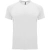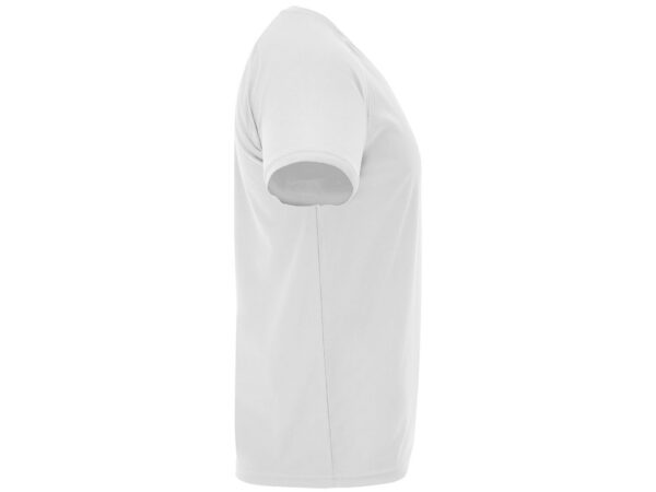 Спортивная футболка с коротким рукавом реглан. Круглый вырез горловины с отделкой плоским швом. Рукав сложного кроя для обеспечения дополнительного удобства при занятиях спортом. Отделка плоским швом с застилом по пройме и рукавам.