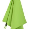 Полотенце изготовлено из микрофибры — современного материала, который легко впитывает влагу в несколько раз больше собственного веса, быстро сохнет, не оставляет ворсинок и не покрывается катышками.