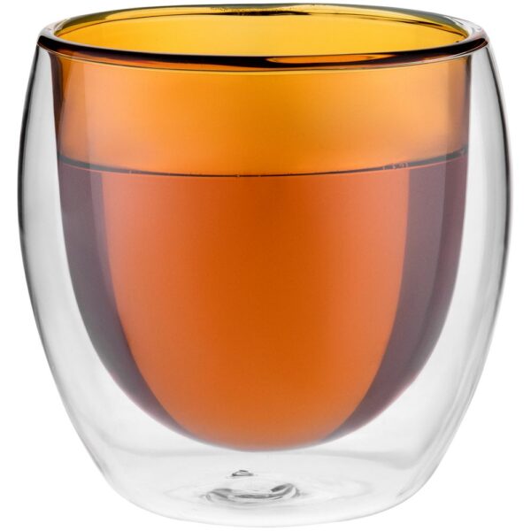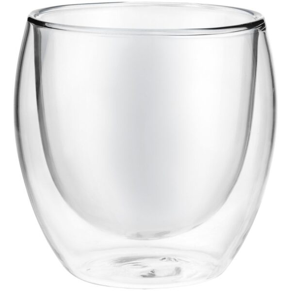 Стакан с двойными стенками из тончайшего боросиликатного стекла. Практически невесомый и подходит для эффектной подачи любого, даже горячего, напитка и кремовых десертов.