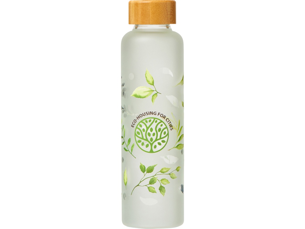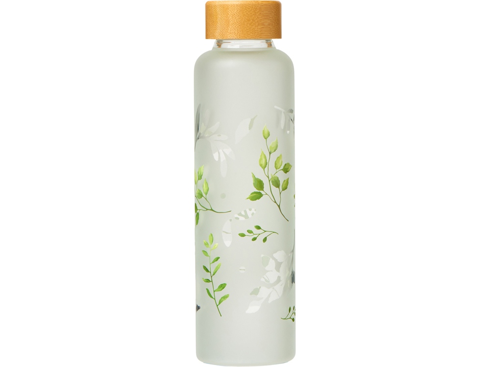 Стеклянная бутылка с бамбуковой крышкой «Foggy», 600 мл (дизайн с листьями)