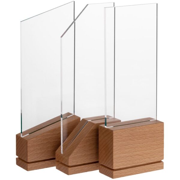 Стела Tribute — это массивное основание из бука с гладкой фактурой и легкая прозрачная вставка из акрила. Идеальный баланс устойчивости и легкости, который важен не только для создания награды привлекательной формы, но и для достижения результата, который этой наградой будет отмечен.