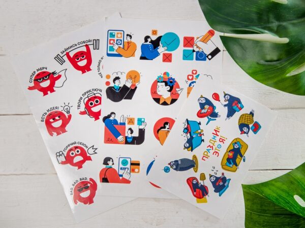 Наклейки формата А5 с ламинацией предназначены для создания индивидуальных стикерпаков под заказ.