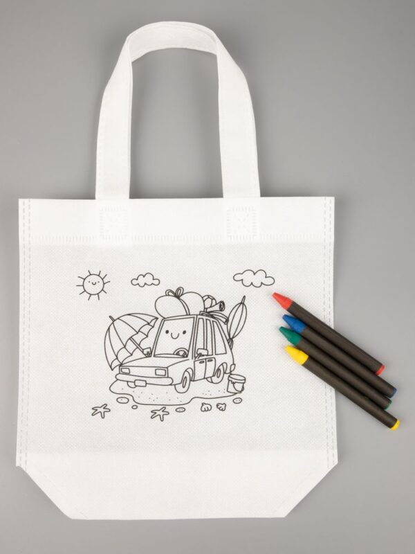 В наборе сумка и набор из 4 восковых карандашей.