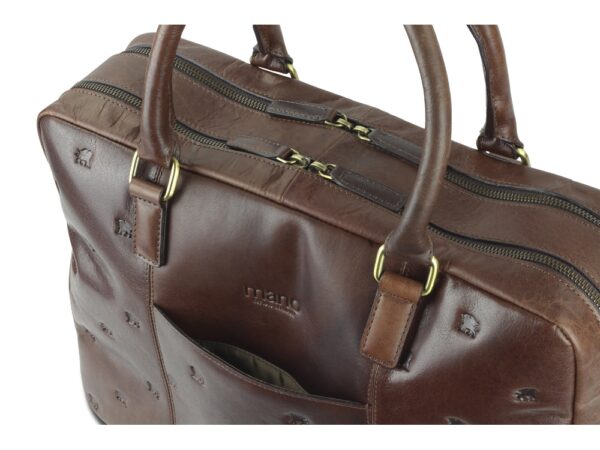 Коллекция «DON LEON» — квинтэссенция инноваций бренда MANO 1919®. Все изделия коллекции изготовлены вручную из высококачественной натуральной кожи буйвола в роскошном коричневом цвете. Элегантное тиснение в виде льва и изящный логотип подчеркивают индивидуальный стиль коллекции.