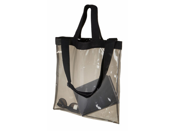 Легкая и вместительная сумка из прозрачного пластика с длинной лямкой из парусины, регулирующейcя по длине, незаменима для шоппинга или путешетсвий. Для большего удобства у сумки есть 2 короткие ручки.