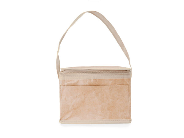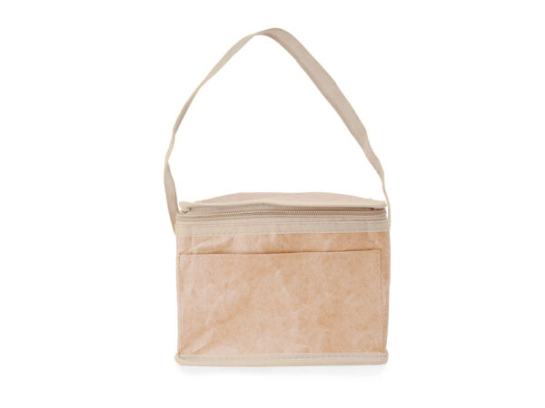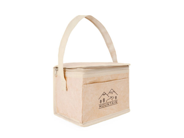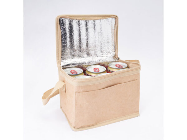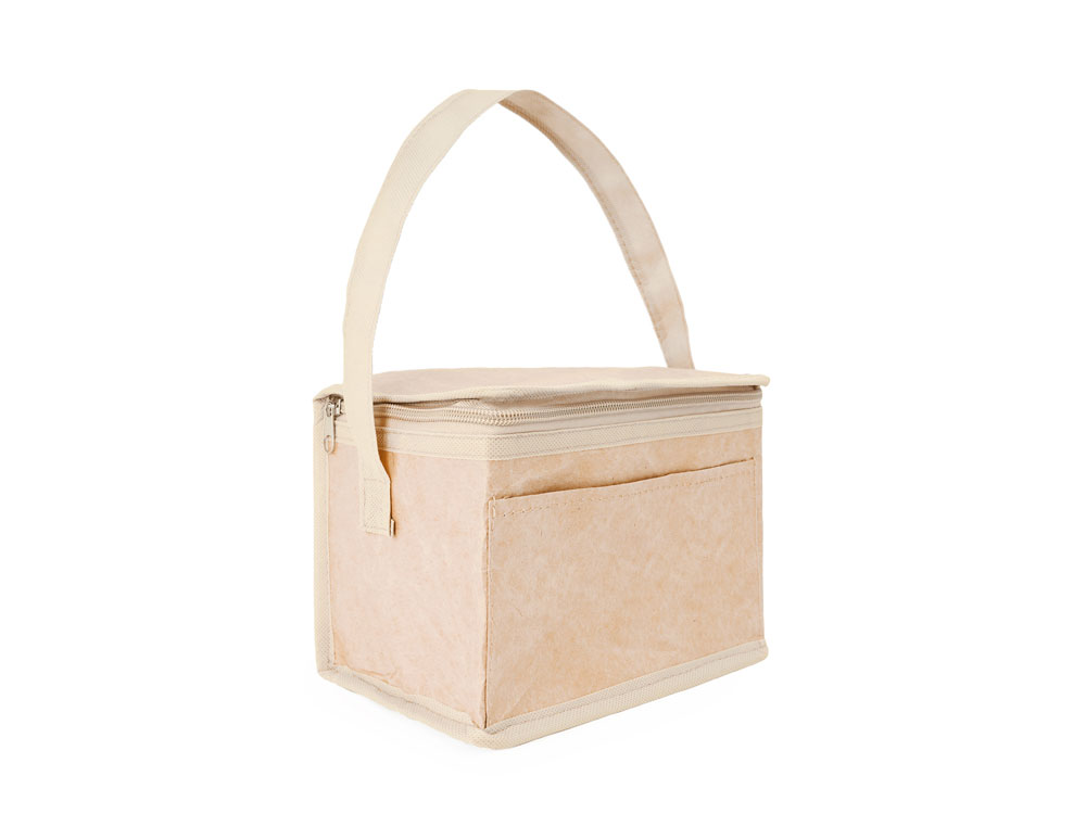 Сумка-холодильник из ламинированной крафт-бумаги с изотермической алюминиевой подкладкой и изоляционной пеной толщиной 2 мм. Ручка длиной 60 см и емкостью 3 литра (6 банок). Клапан с застежкой-молнией и практичной ручкой для переноски.