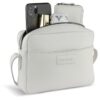 Функциональная организация: основное отделение на молнии с открытым карманом, передний открытый карман, задний карман на молнии, регулируемый плечевой ремень (до 120 см).
