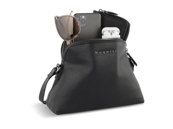 Функциональная организация: основное отделение на молнии с внутренним карманом на молнии, открытый карман, регулируемый плечевой ремень (до 135 см).