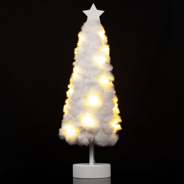 Пушистая елочка с лампочками. Работает от 2 батареек ААА (в комплект не входят).