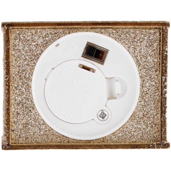 Внутри светодиодная свеча с теплым белым светом. Работает от 1 батарейки типа CR2032 (в комплект не входит).