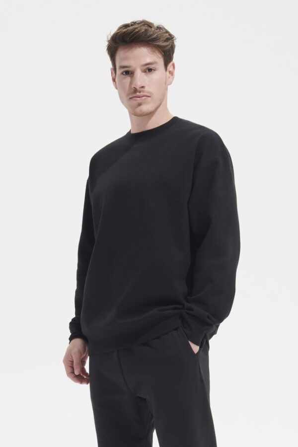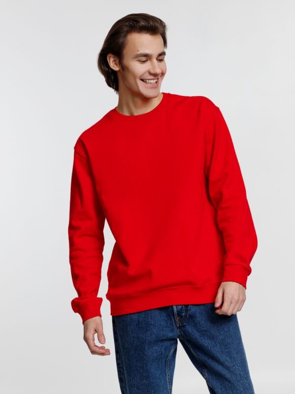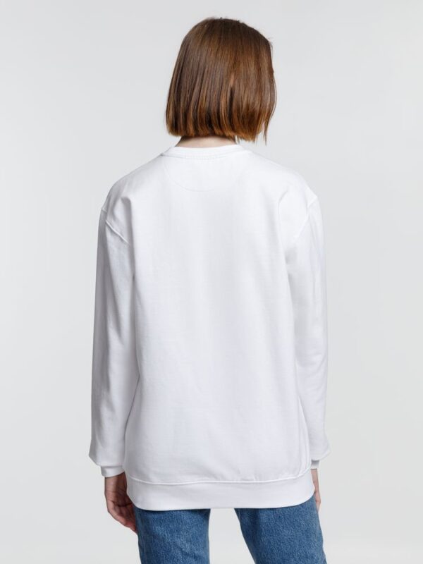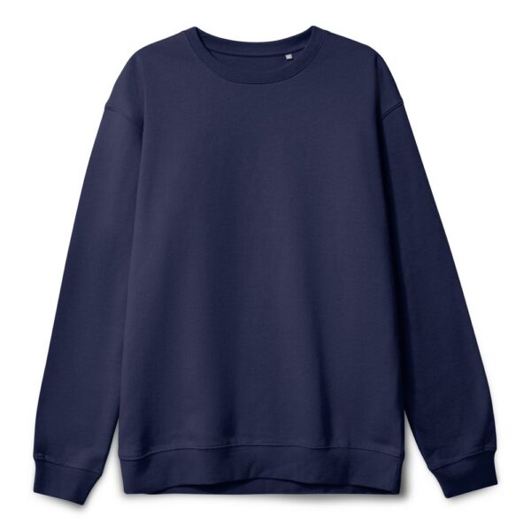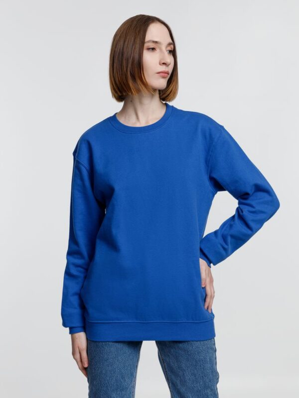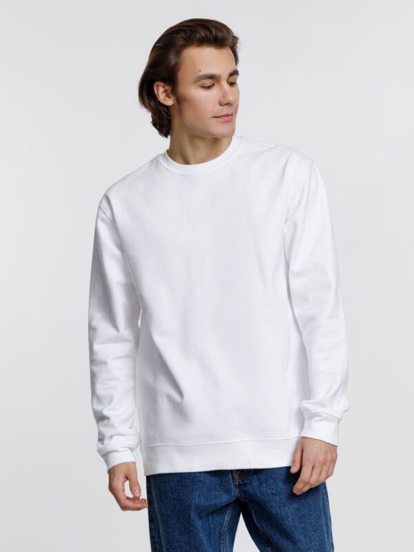 Свитшот унисекс из хлопка и переработанного полиэстера с круглым вырезом и втачным рукавом.