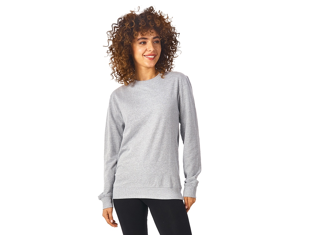 Свитшот выполнен из хлопкового 2х ниточного френч терри с петельками на изнаночной стороне. В этой модели — комфортно и удобно, это базовый предмет гардероба, который станет прекрасным мерчем, ведь компактное переплетение полотна позволяет нанести изображение идеальным образом.