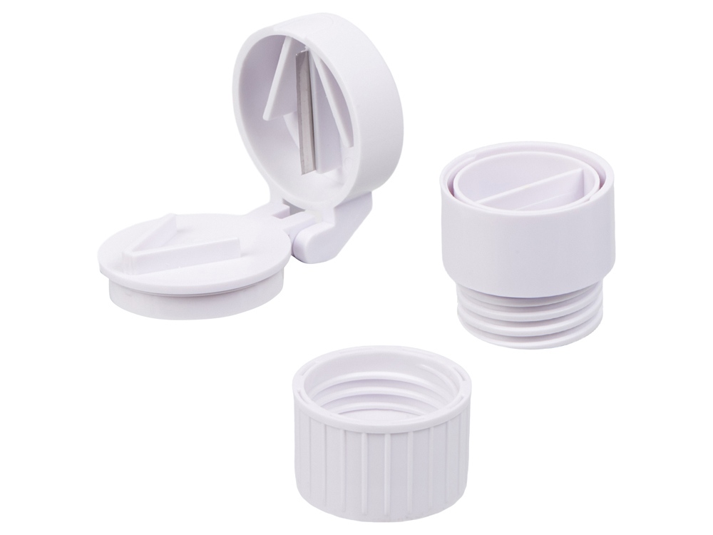 1. Резак. Под крышкой установлен специальный резак, который поможет быстро и аккуратно поделить таблетку на 2, 3 и большее количество частей, чтобы точно соблюсти дозировку лекарств;