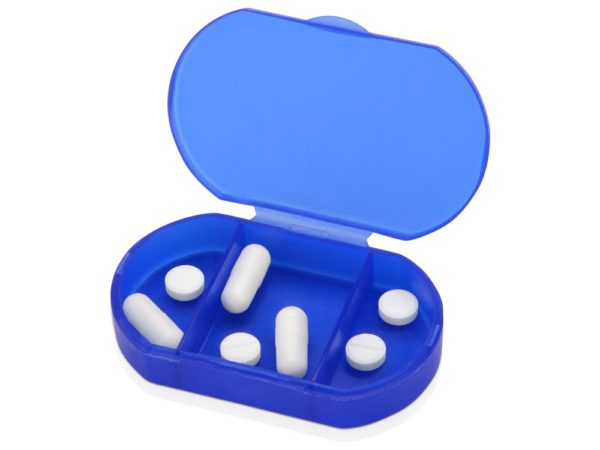 Компактная таблетница выполнена из прочного полупрозрачного пластика, имеет три отделения.