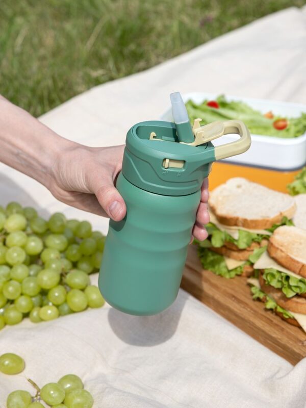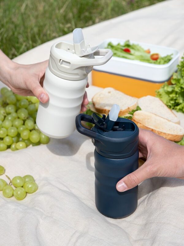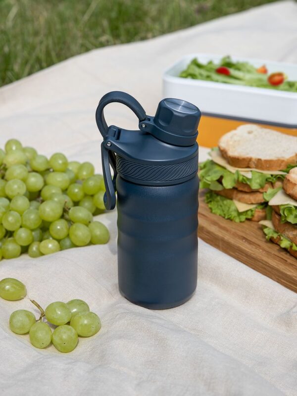 - Конструкция с двойными стенками и вакуумной изоляцией сохраняет содержимое холодным до 24 часов, горячим — до 12 часов