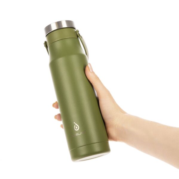 - Конструкция с двойными стенками и вакуумной изоляцией сохраняет содержимое холодным до 24 часов, горячим — до 12 часов