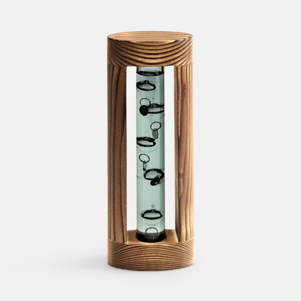 Любопытный термометр, изобретенный великим Галилео Галилеем, который первым обнаружил, что плотность жидкости увеличивается при снижении температуры и уменьшается при ее повышении.