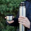 Двухслойная вакуумная конструкция из нержавеющей стали внутри и снаружи с завинчивающейся пробкой с клапаном.
