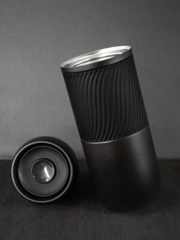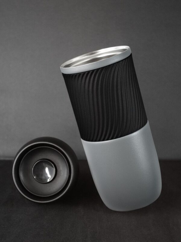 Силиконовая манжета позволяет комфортно держать стакан и в дождь, и в жару, и в холод. С ней стакан не выскользнет из рук, а ладони не замерзнут от соприкосновения с металлом зимой.