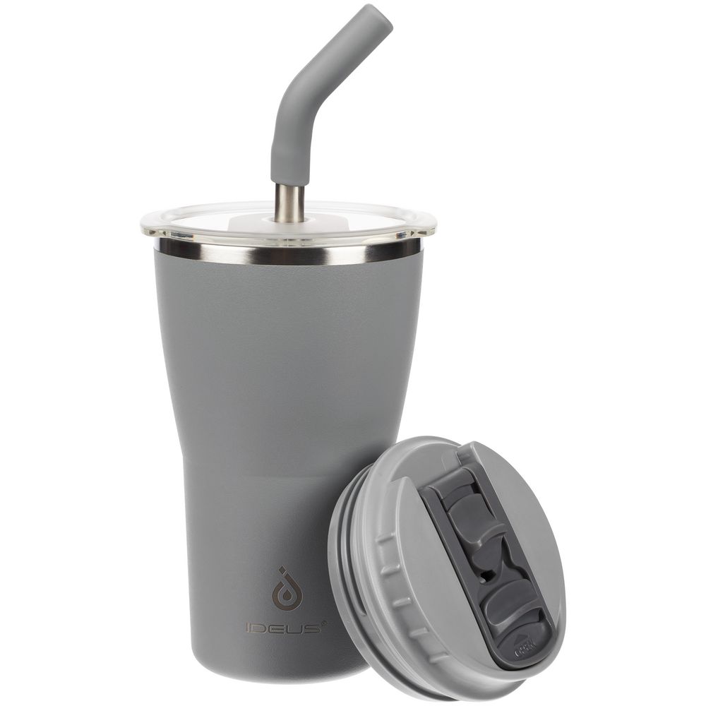 • 2 крышки в комплекте: одна на 100% герметичная с механизмом блокировки отверстия для питья, вторая — с отверстием для трубочки