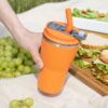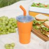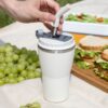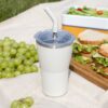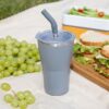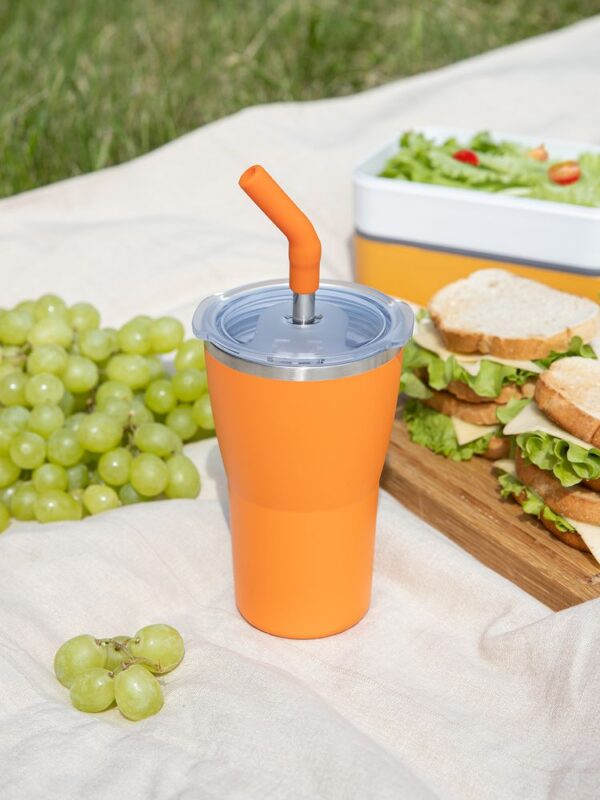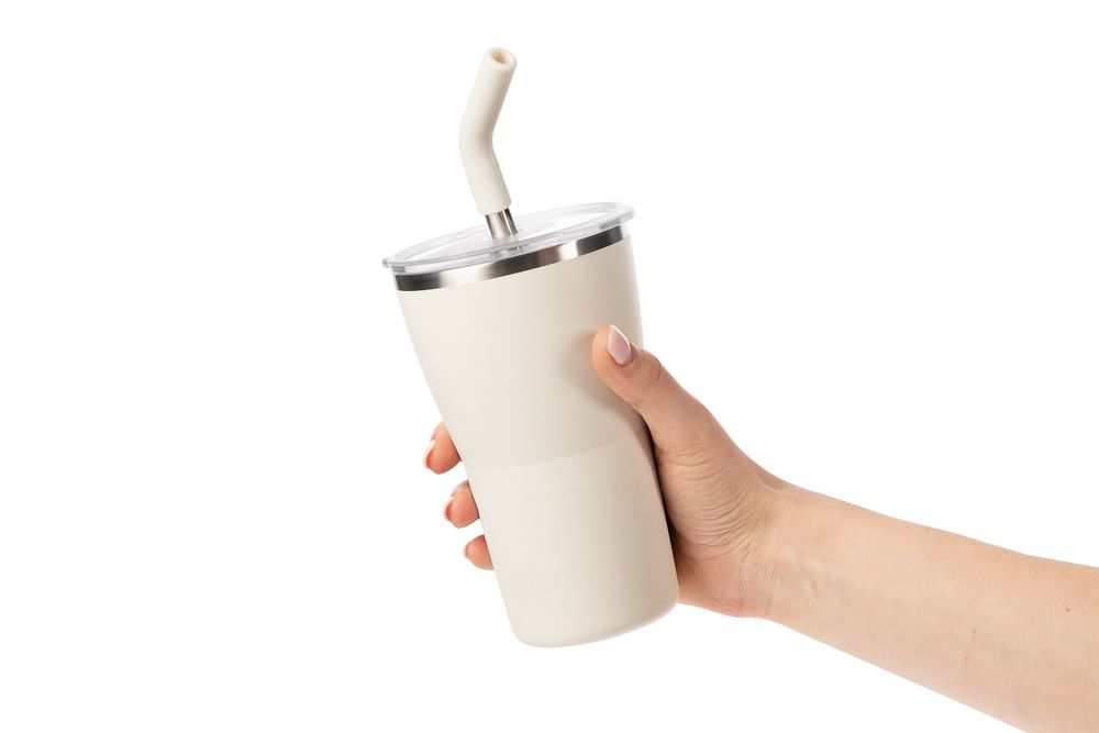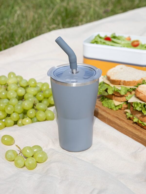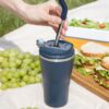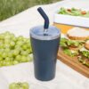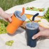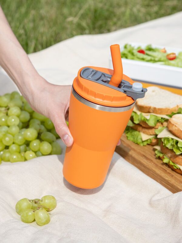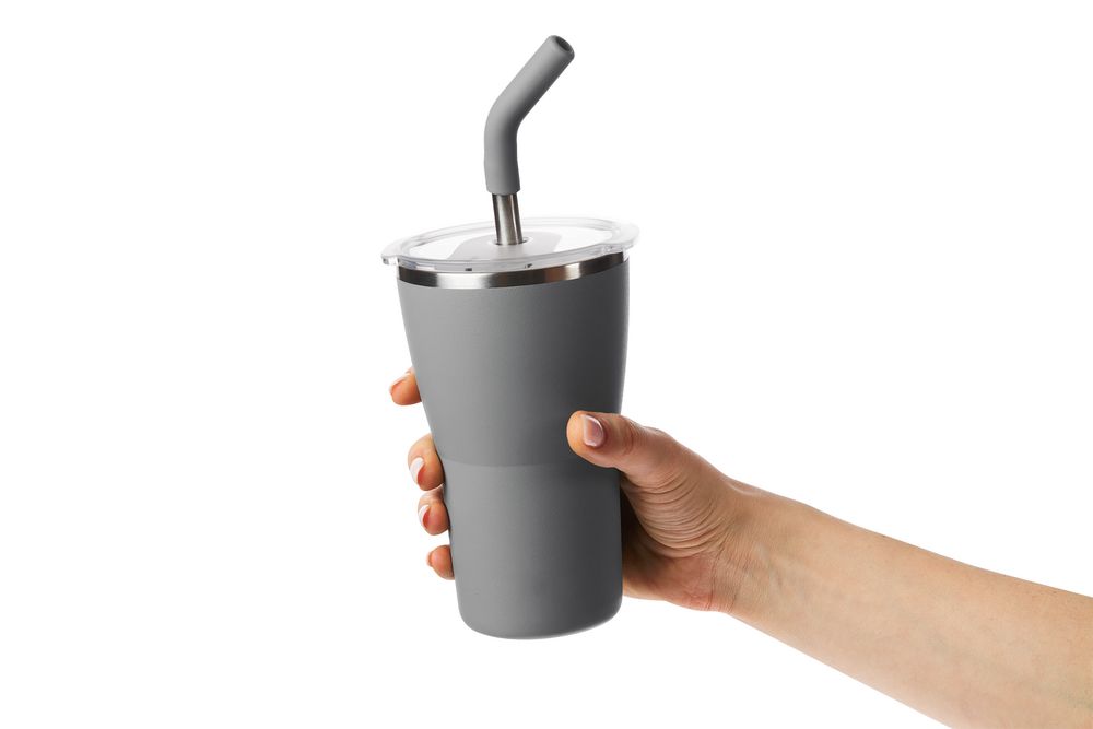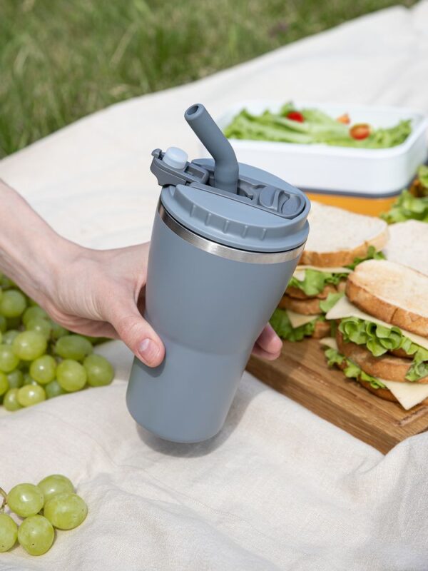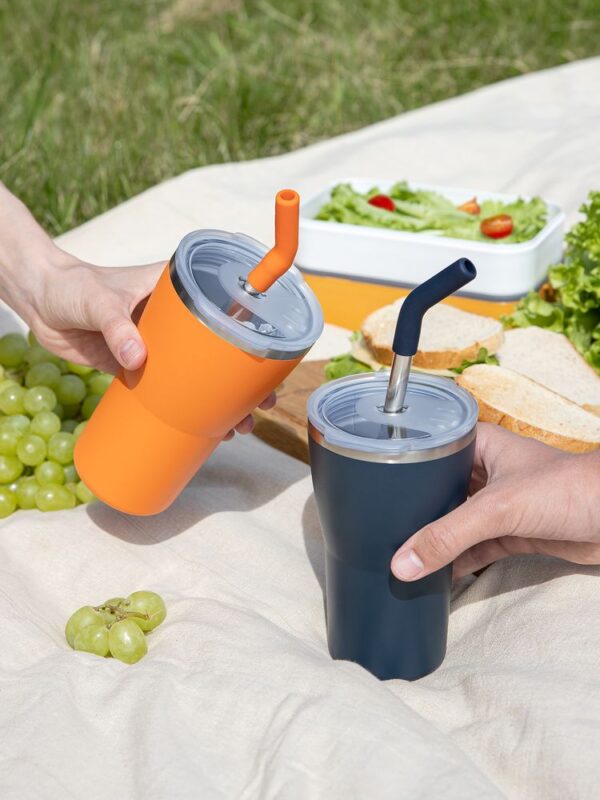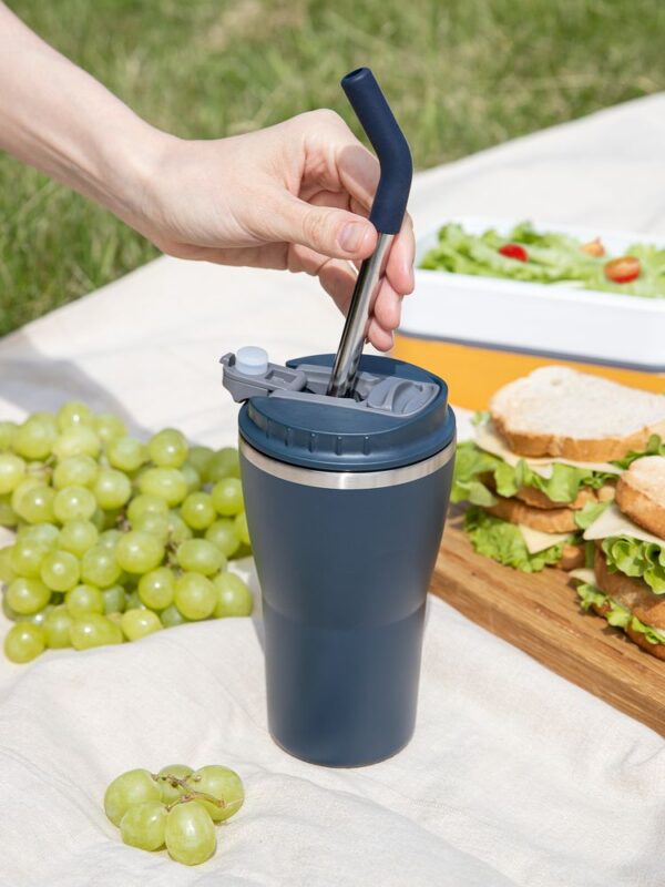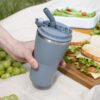 - 2 крышки в комплекте: одна на 100% герметичная с механизмом блокировки отверстия для питья, вторая — с отверстием для трубочки
