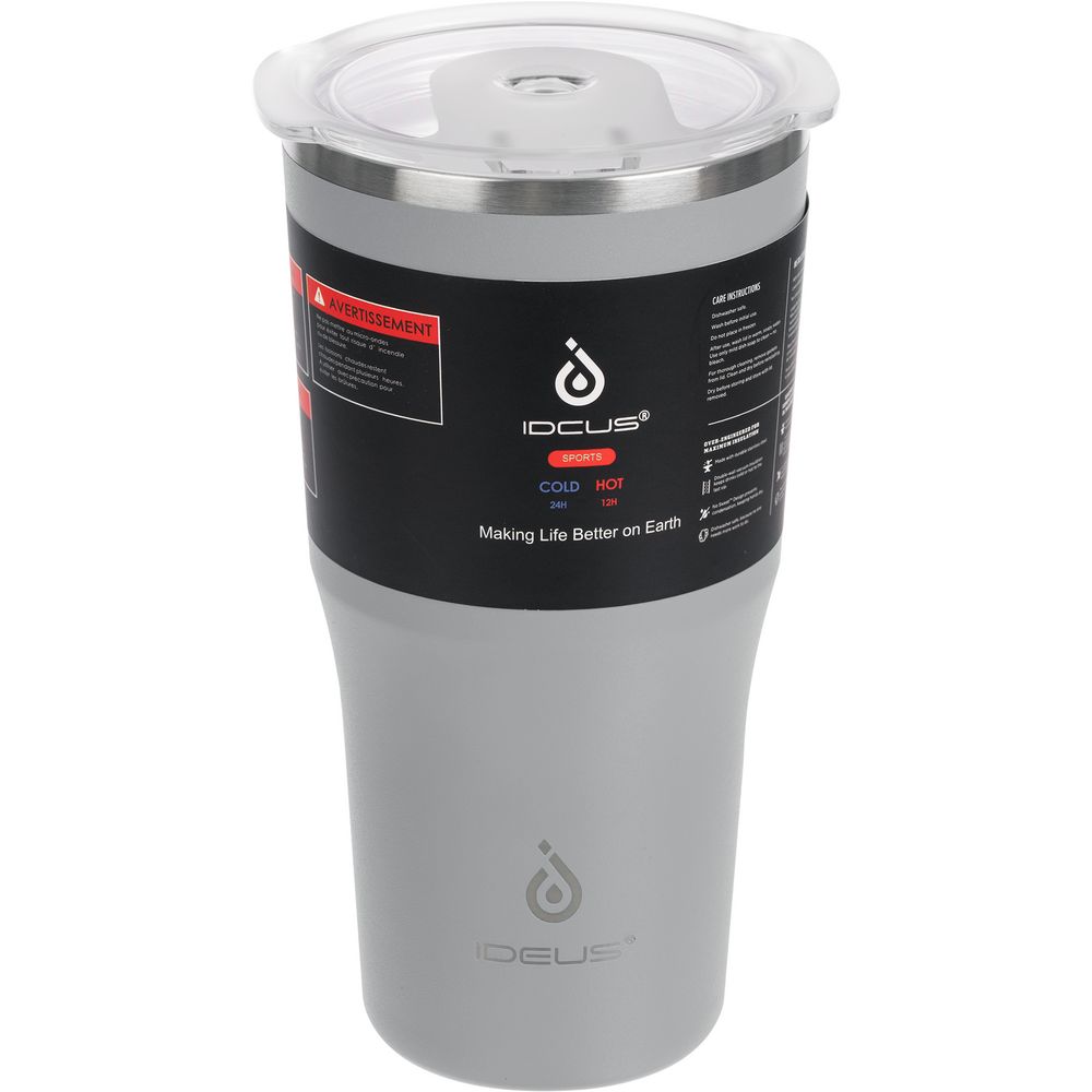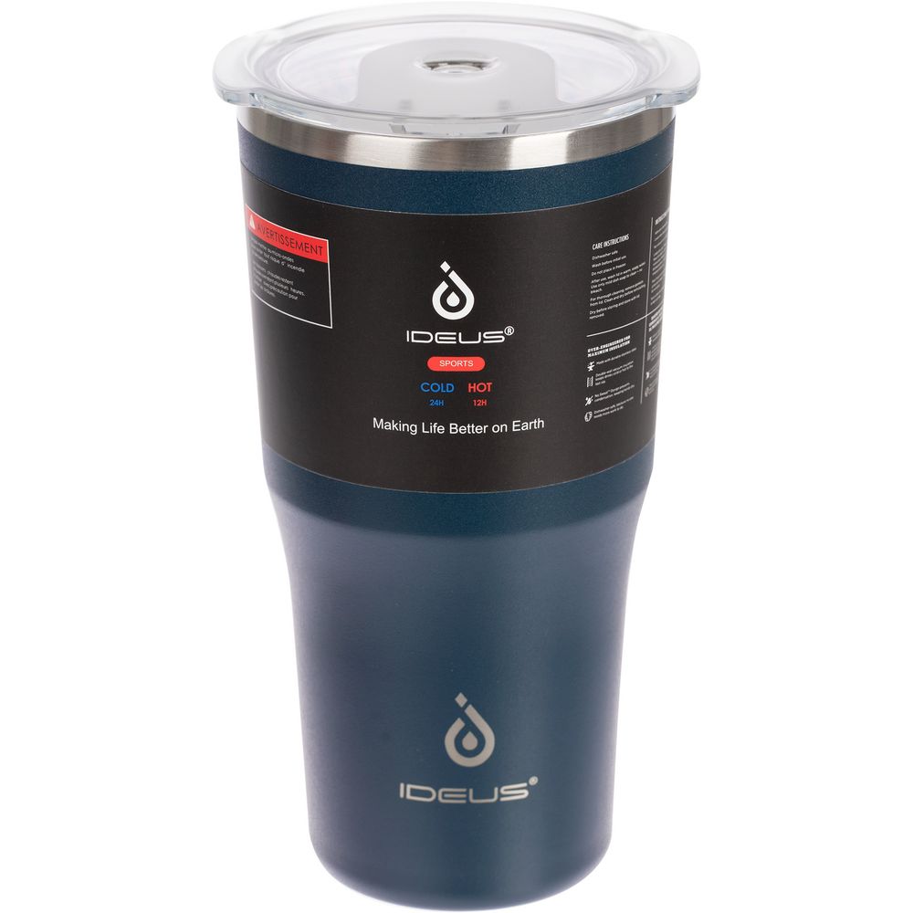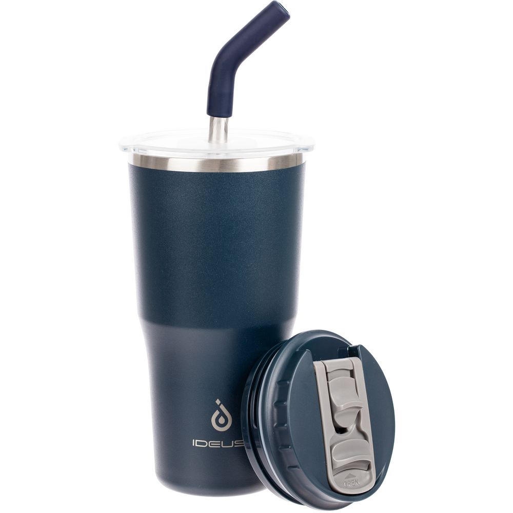 - 2 крышки в комплекте: одна на 100% герметичная с механизмом блокировки отверстия для питья, вторая — с отверстием для трубочки