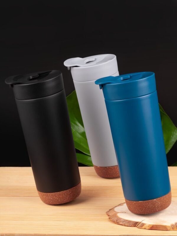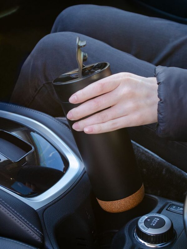 Контраст текстурной пробки на дне и матового покрытия делают термостакан Steady не только практичным, но и стильным подарком.