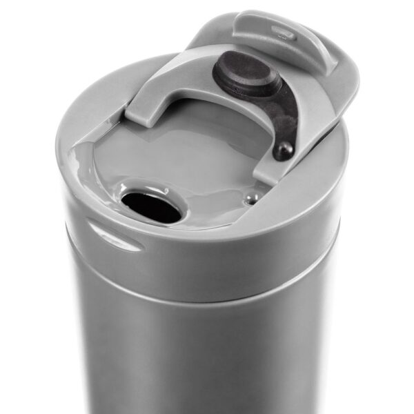 Двухслойная вакуумная конструкция из нержавеющей стали внутри и снаружи. Герметичная завинчивающаяся крышка с откидным клапаном для питья.