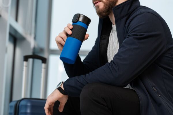 Большой термостакан с герметичной крышкой.