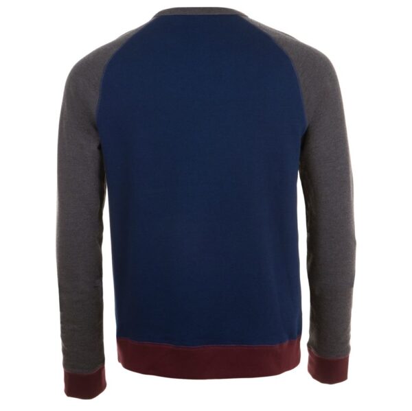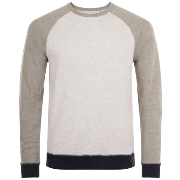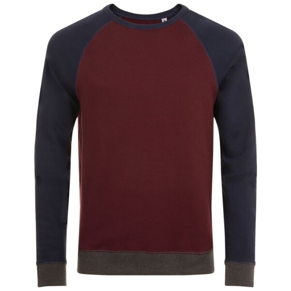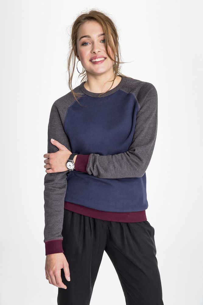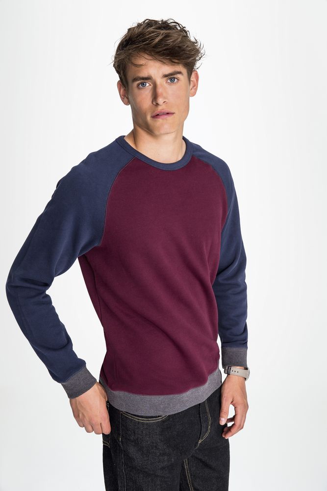 Трехцветный свитшот в стиле 80-х с рукавом реглан. Лейбл производителя в боковом шве изнутри, в шве горловины — только бирка с размером, что позволяет вам нанести свой логотип.