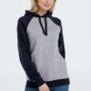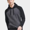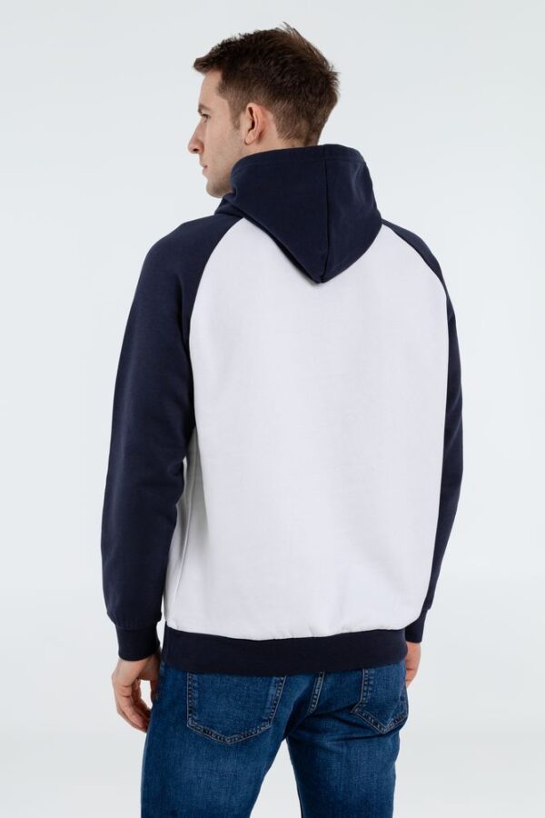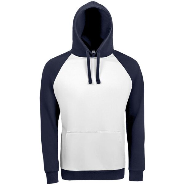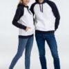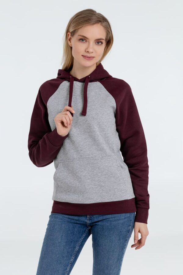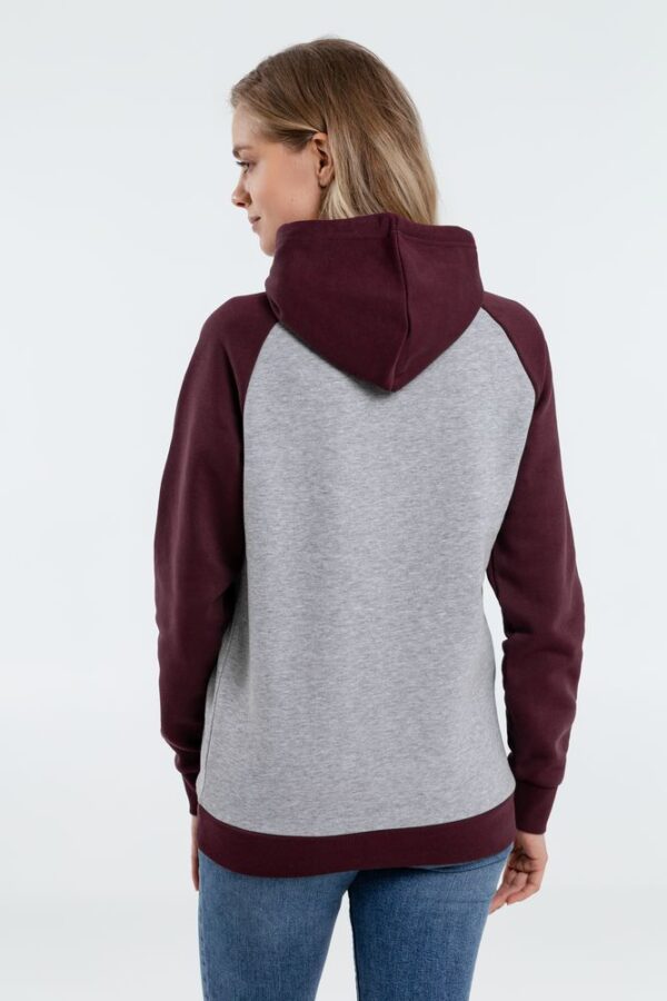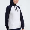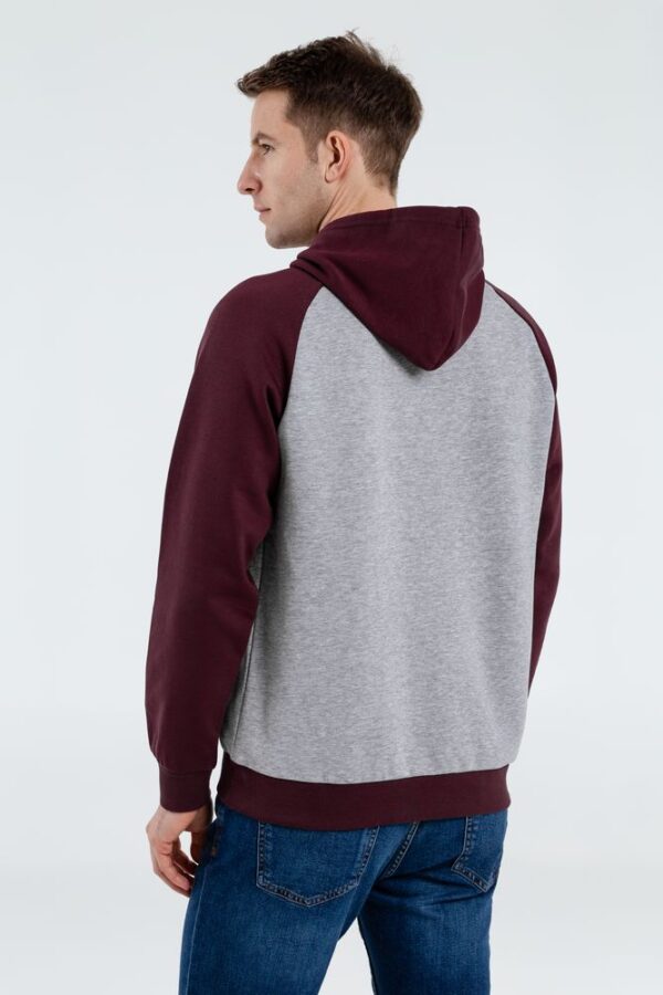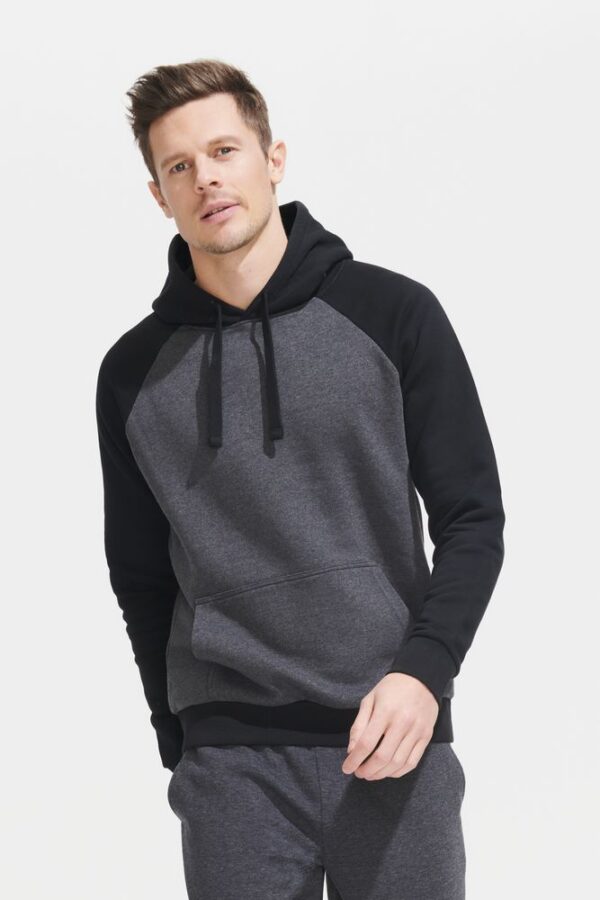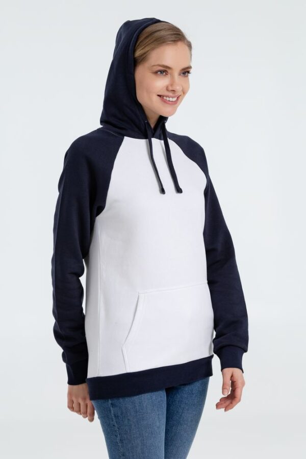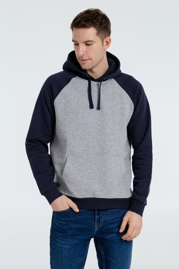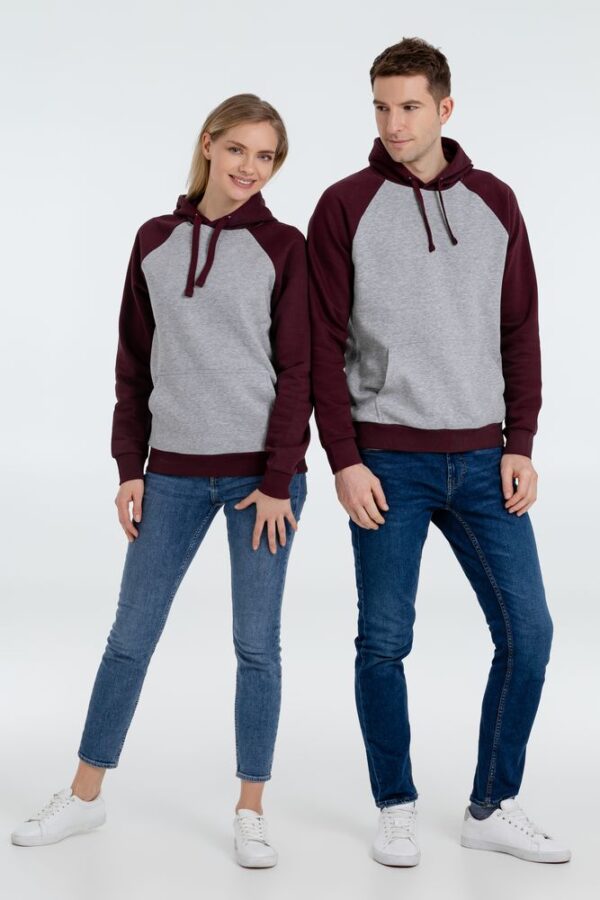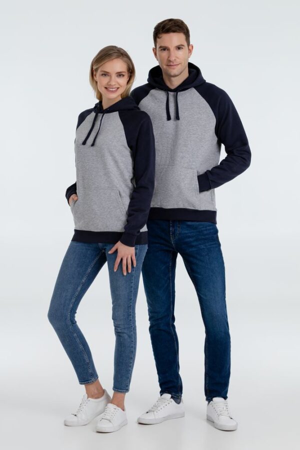 Двухцветная утепленная толстовка унисекс с рукавами реглан и карманом-кенгуру.