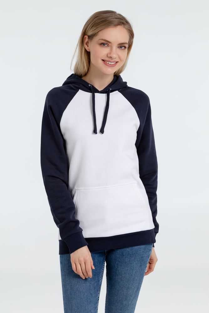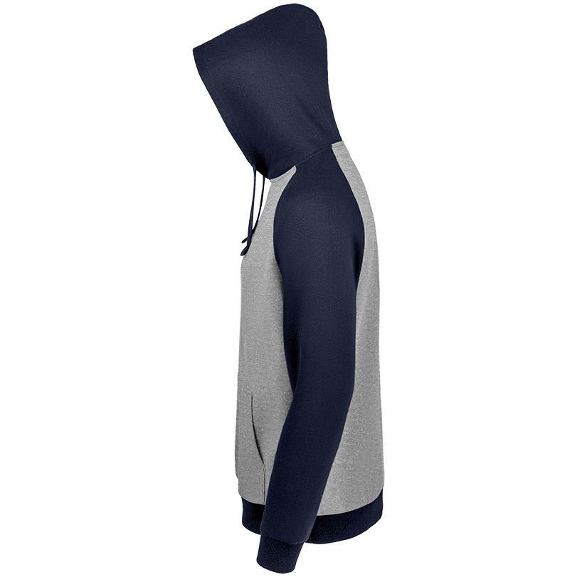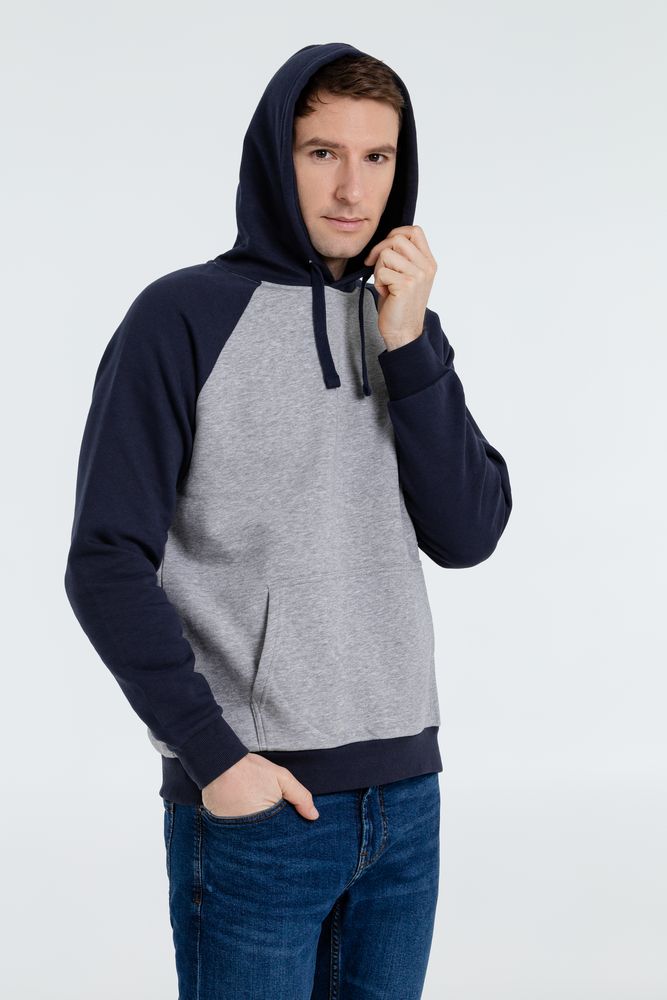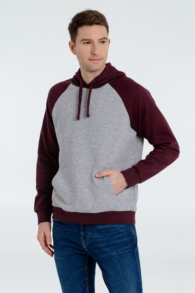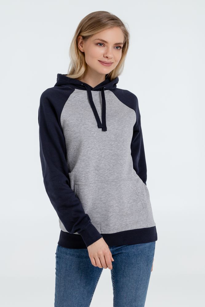 Двухцветная утепленная толстовка унисекс с рукавами реглан и карманом-кенгуру.