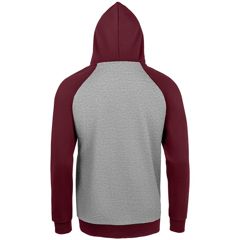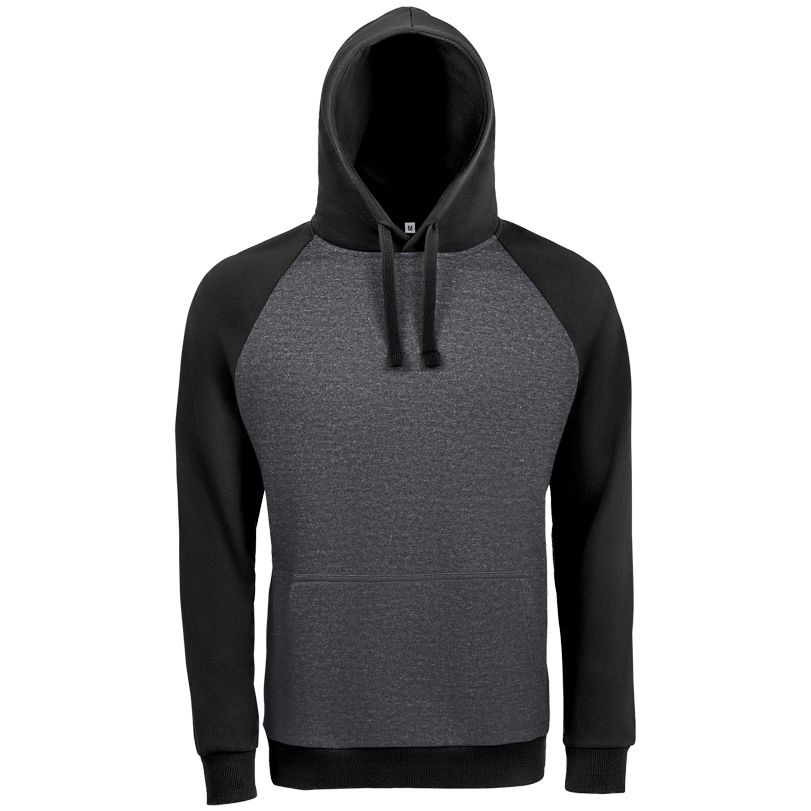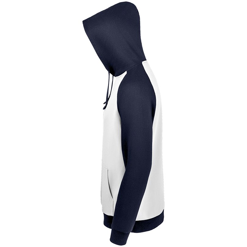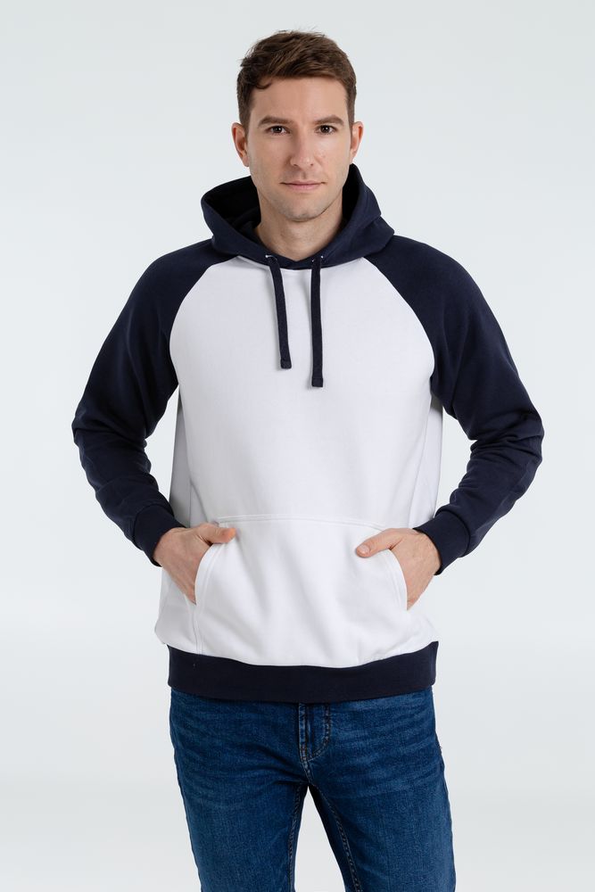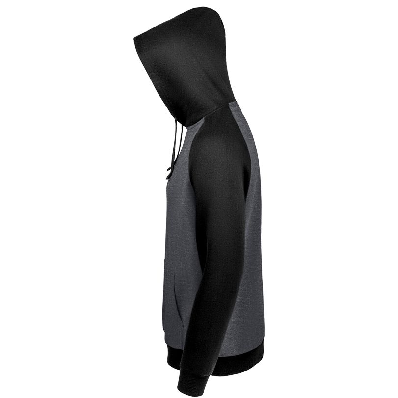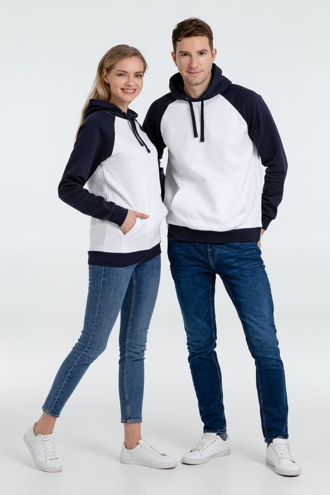 Двухцветная утепленная толстовка унисекс с рукавами реглан и карманом-кенгуру.
