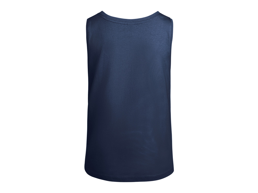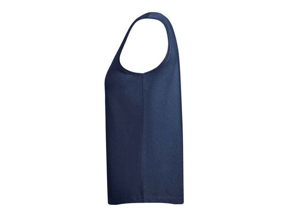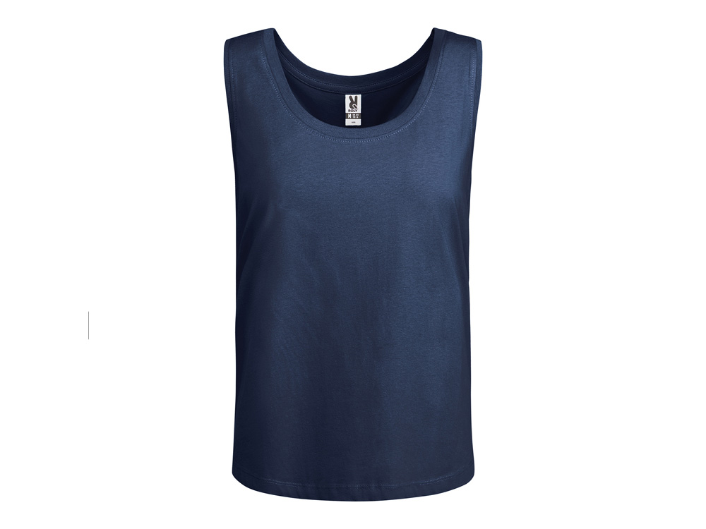 Свободная женская футболка с широкими бретелями. Вырез и проймы обработаны бейкой из риба 1×1. Подол округлой формы. Боковые швы.