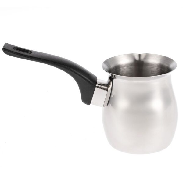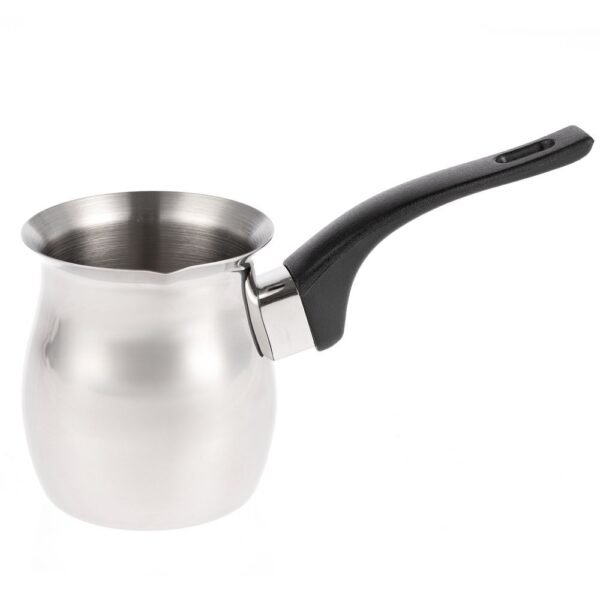 Турка из высококачественной нержавеющей стали не подвержена коррозии, не боится высоких температур и проста в уходе. Ручка турки выполнена из бакелита, благодаря чему не нагревается и не скользит в руке.Емкость 200 мл.