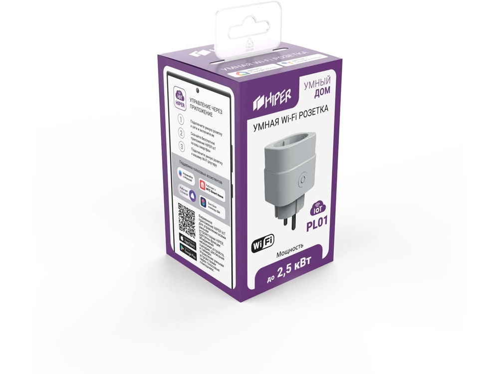 Умная розетка HIPER IoT PL01 предназначена для удаленного включения/выключения электроприборов, а также для поддержки исполняемых сценариев.