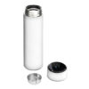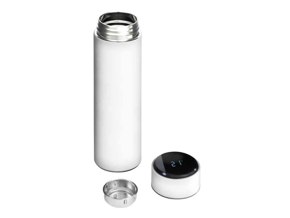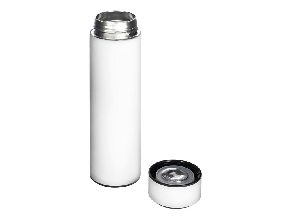 Вакуумный термос «Module X» не только сохраняет ваши напитки горячими, но и показывает, насколько они горячие! Уникальная особенность термоса — это сенсорный индикатор температуры, расположенный в крышке. Чтобы узнать температуру внутри термоса, достаточно прикоснуться к поверхности крышки. Батарейку CR2032 по истечении срока работы (1-2 года) можно заменить — для этого открутите верхнюю часть крышки против часовой стрелки и аккуратно поменяйте элемент питания.