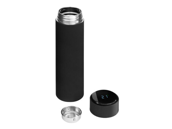 Вакуумный термос «Module X» не только сохраняет ваши напитки горячими, но и показывает, насколько они горячие! Уникальная особенность термоса — это сенсорный индикатор температуры, расположенный в крышке. Чтобы узнать температуру внутри термоса, достаточно прикоснуться к поверхности крышки. Батарейку CR2032 по истечении срока работы (1-2 года) можно заменить — для этого открутите верхнюю часть крышки против часовой стрелки и аккуратно поменяйте элемент питания.