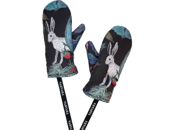 Авторский принт написан художницей вручную специально для российского бренда Varvara. Художница размышляла на тему русской природы, культуры и искусства — тут и лесная земляника, и сочная зелень, и конечно, сказочные зайцы — как будто только что сошли с полотен В. Васнецова.