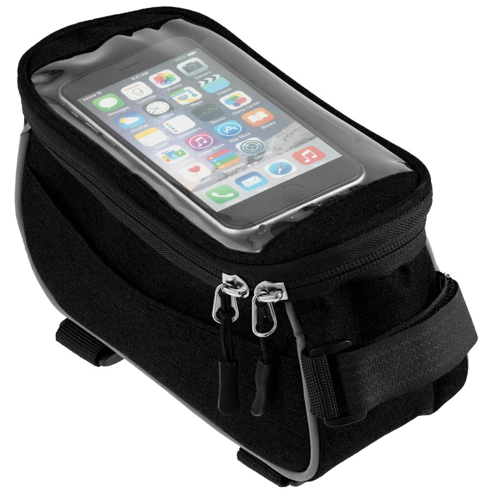 Наружный карман для телефона или навигатора с прозрачным окошком защищает его от падения и намокания, а также позволяет пользоваться сенсорным экраном во время движения. Вмещает телефон с диагональю до 6″.